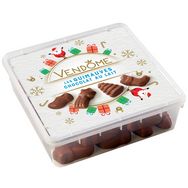 Ingrédients : Sirop de glucose, chocolat au LAIT 25% (sucre, beurre de cacao, poudre de LAIT entier (LAIT origine UE ou hors UE), pâte de cacao, émulsifiant : lécithines (SOJA), arôme naturel de vanille), sucre, eau, dextrose, sucre glace, gélatine de porc, arôme vanille, protéines de LAIT hydrolysées (LAIT origine UE). Traces éventuelles de céréales contenant du gluten, d'arachides, de fruits à coque et d'oeufs.