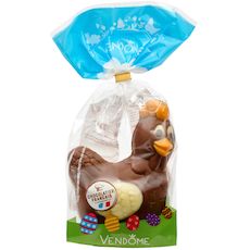 "Poule décorée chocoalt laitChocolat au lait extra-fin fabriqué en France"