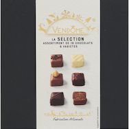 Ce coffret propose un assortiment de chocolats pur beurre de cacao, lait 33% et noir 70%, fabriqués dans la tradition des maîtres chocolatiers.