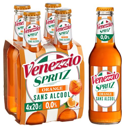 Un Spritz Prêt à Boire en format individuel 4x20 cl, pour une consommation plaisir d'une proposition sans alcool d'un cocktail ultra tendance. Venezzio s’inscrit dans la tradition italienne des boissons amères.
