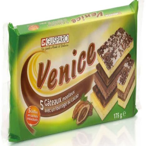 Sucre, farine de blé, graisse végétales (palme, palmiste, noix de coco) sirop de glucose-fructose, œufs, eau, poudre de cacao maigre (3%), dextrose, arômes (contient alcool), pâte de cacao (1.4%), émulsifiant : mono – et diglycérides d’acides gras, lécithines(soja), stabilisant : sorbitol, poudre de lait écrémé,
