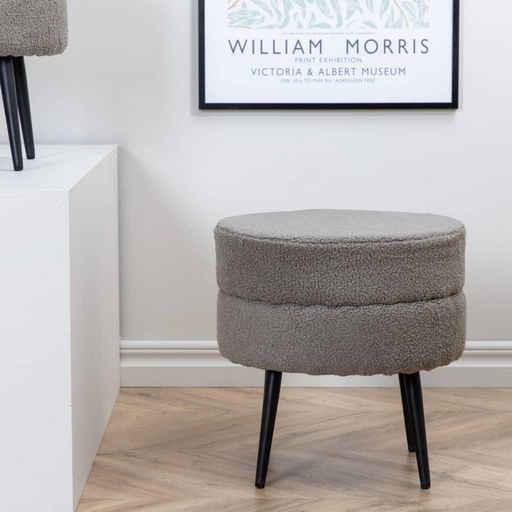 - Assise elegante et confortable : le pouf est caracterise par un design moderne en tissu doux teddy avec des pieds evases. Les pieds en acier contribuent a la stabilite de ce pouf, et ils deviennent un detail decoratif.