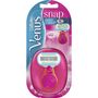 Son petit format est très pratique pour le glisser dans une trousse de voyage ou dans un vanity,on peut l emporter partout,il ne prend pas de place même dans son sac à main.j adore cette version compact du rasoir venus,avec ses 5 lames et son ruban lubrifiant il suffit de le mouiller plus besoin de mousse de rasage,il laisse les jambes douce et sans coupures,son étui avec des petits trous est très pratique pour que le rasoir puisse sécher.
