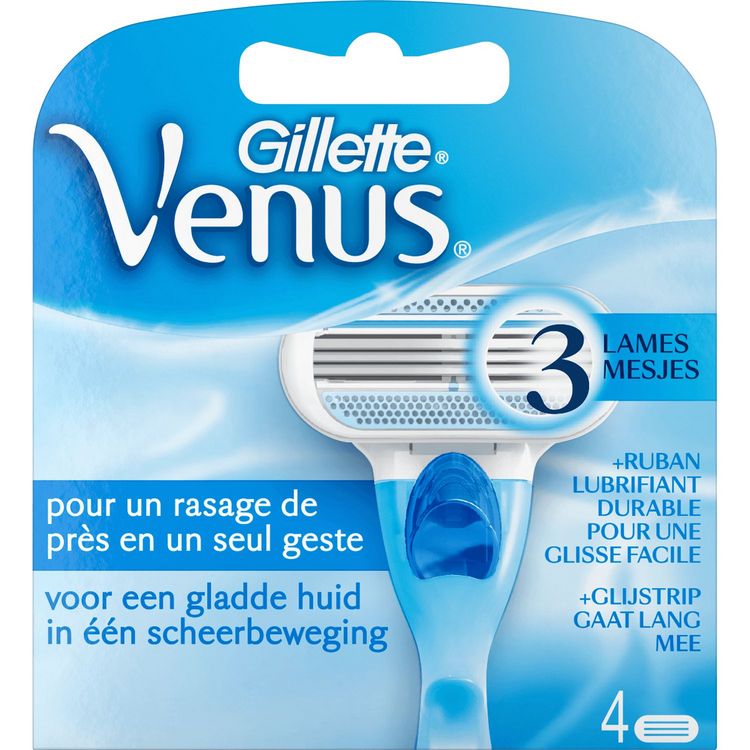 Venus GILLETTE LAMES SMOOTH 4CT Le rasoir pour femmes Gillette Venus Smooth est le premier rasoir à 3 lames conçu pour les femmes. Il est doté de 3 lames qui épousent les courbes, entourées de coussinets protecteurs qui lissent délicatement la peau pour un rasage de près impeccable en un seul passage. Il est également doté d’une bande de couleur bleue qui s’estompe lorsque le rasage de Venus n’est plus optimal.