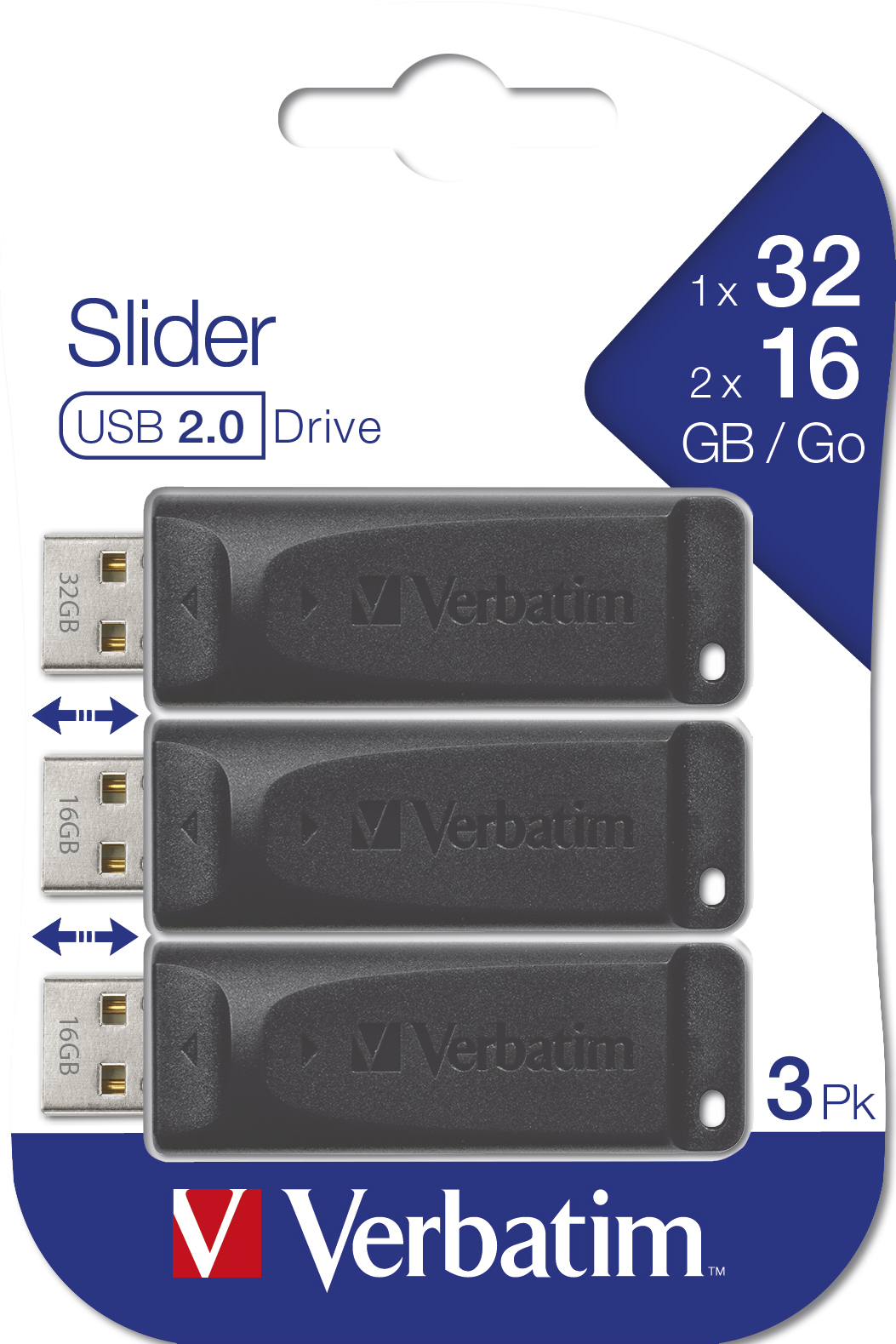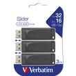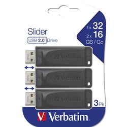 Pack de 3 clé USB 2.0 Slider - 2 x 16 Go et 1 x 32 Go - Noir