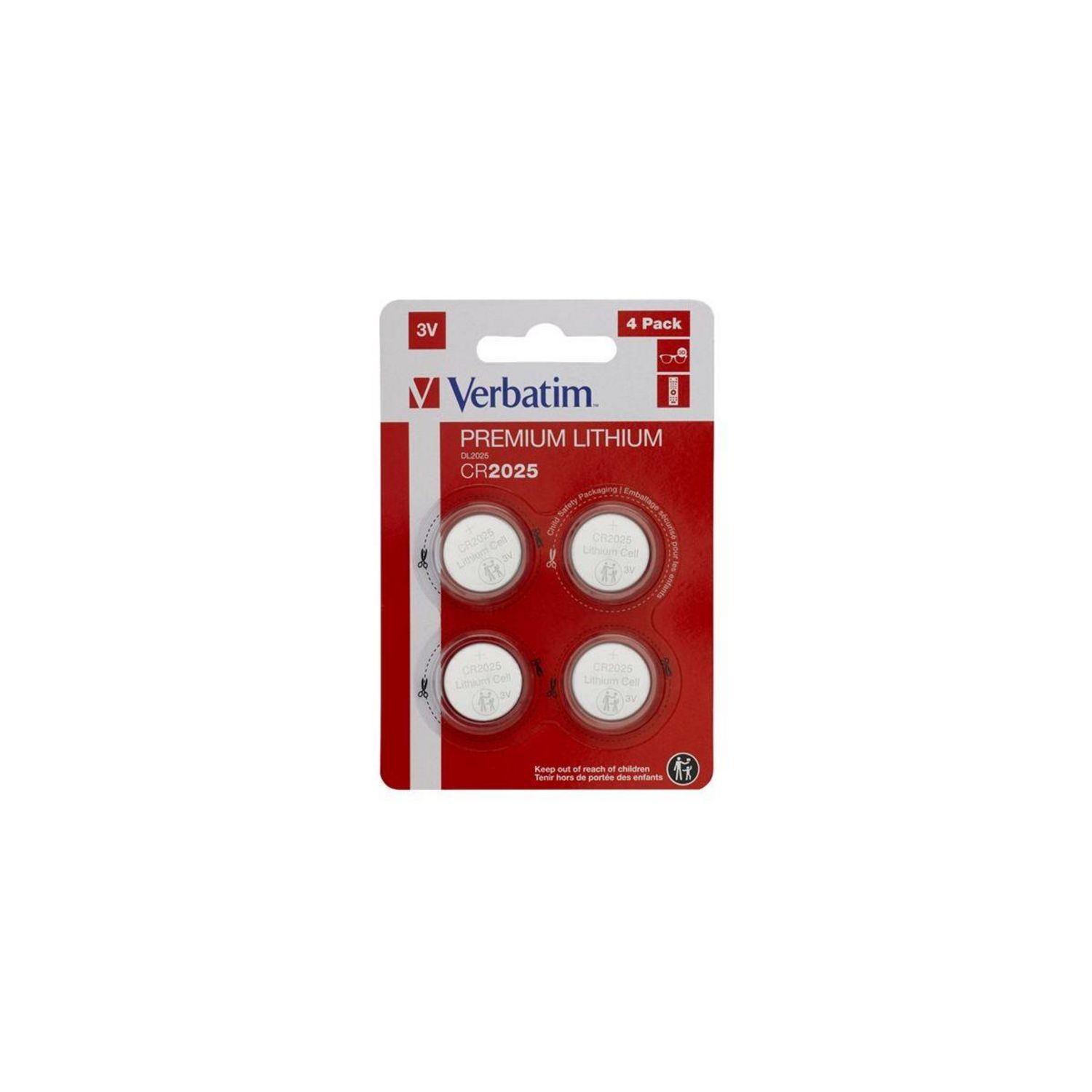 Caracteristiques generales TypeNon rechargeables FormatCR2025 Nombre de pile(s)4 Services inclus Disponibilité des pièces détachées (données fournisseur)Pas de pièce disponible Référence constructeurCR2025 - Pile au lithium 3V (pack de 4) MarqueVERBATIM