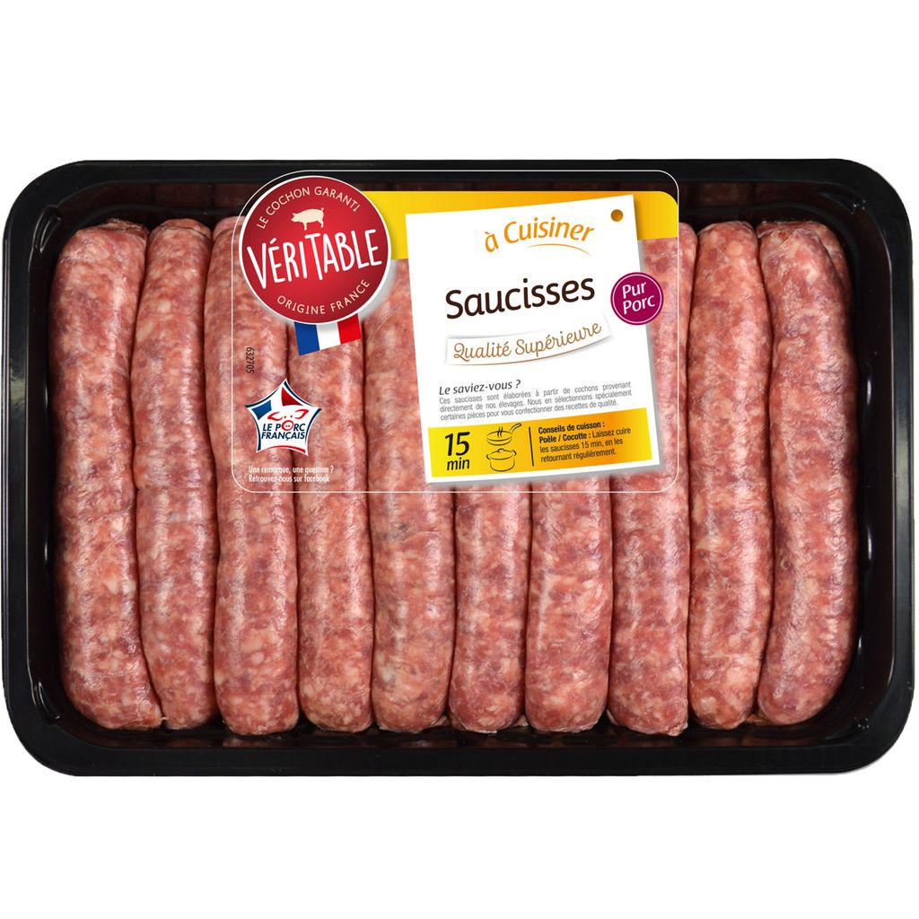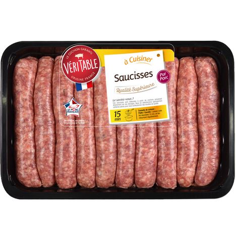 20 Saucisses supérieures Une recette savoureuse réalisée à partir d'épices minutieusement sélectionnées, de la viande 100% française, présentée sous boyaux exclusivement naturels.