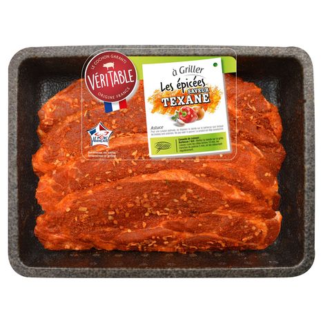 Une côte de porc échine recouverte d'un mélange d'épices qui allie touche de paprika et marquants d'oignon. 4 côtes échine de porc saveur Texane