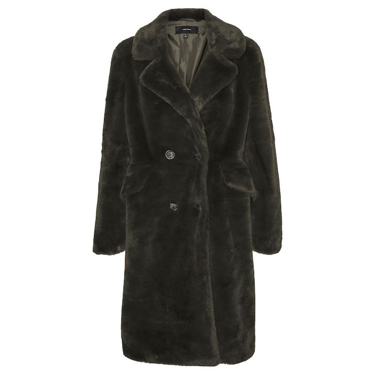 Optez pour ce manteau Vero ModaColoris : MarronManches longuesComposition : 50% polyester recyclé, 50% polyesterFausse fourrure2 pochesFermeture à boutons