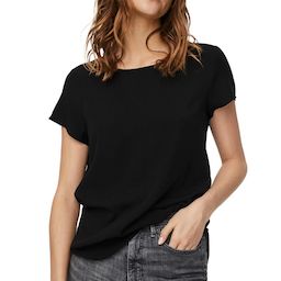Craquez pour la blouse de la marque VERO MODA !Coloris : Noire Col rondManches courtesManches altiquesLongueur regularCoupe : Regular FitComposition : 97% Viscose, 3% Élasthanne