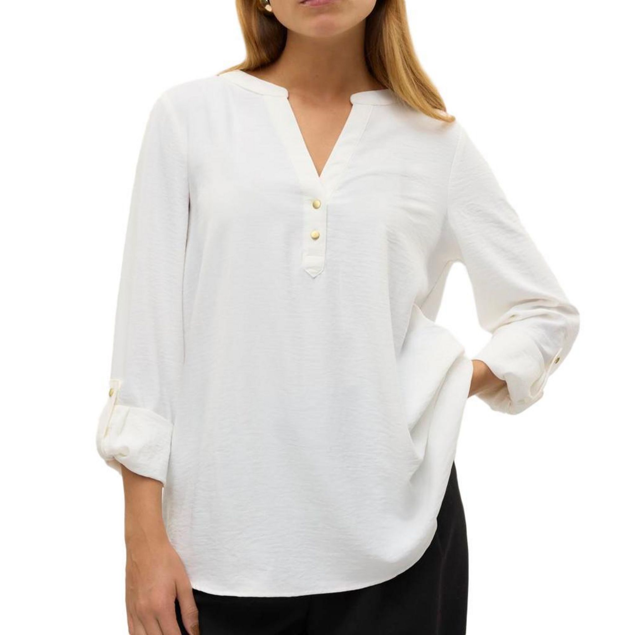 Optez pour cette blouse Vero ModaColoris :Blanche Manches 3/4Composition : 51% polyester, 49% polyesterCol V