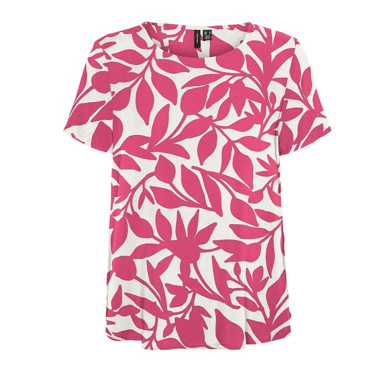 Optez pour cette blouse de la marque Vero ModaColoris Blanc/RoseMotifs imprimésComposition : 100% ViscoseCol rond