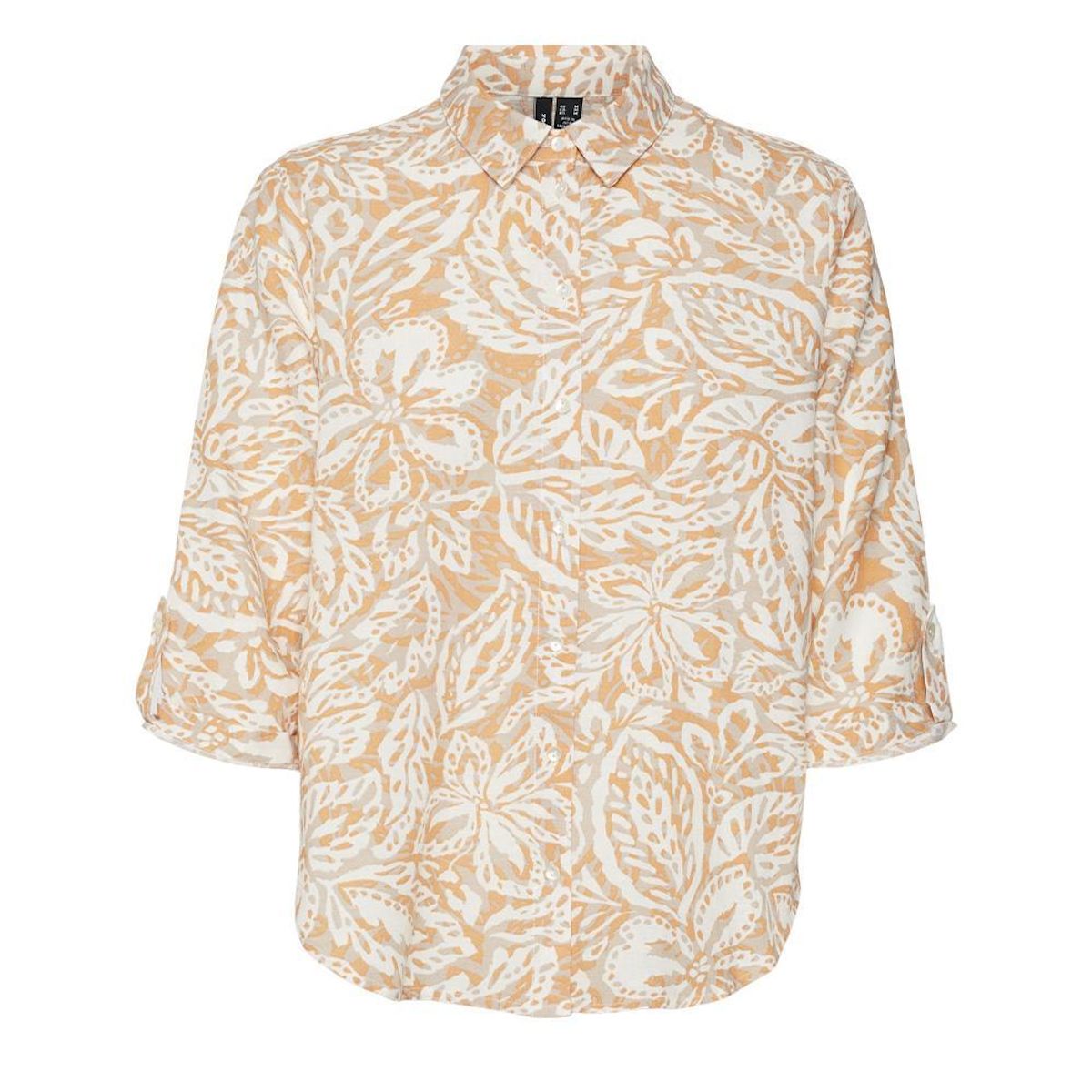 Optez pour cette chemise Vero Moda- Coloris : Orange/Blanche- Col chemise- Manches 3/4- Composition : 47 % viscose, 41 % coton, 12 % lin