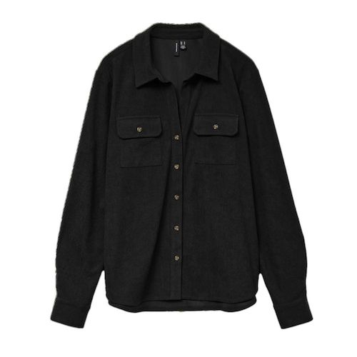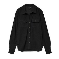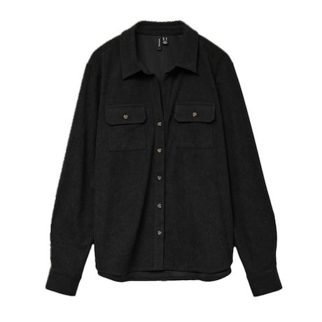 Optez pour la chemise de la marque VERO MODA !Coloris noir Manches longues Fermeture : boutonCapuche : sans capucheForme du col : cheminéeMatière : veloursComposition : 86% Polyester 12% Nylon 2% Elasthanne