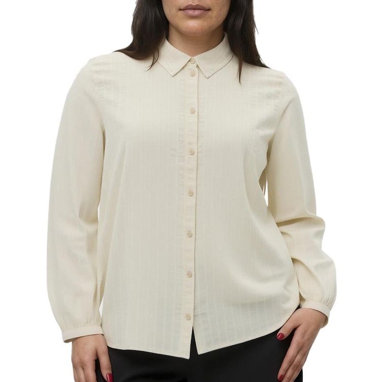 Optez pour cette chemise Vero Moda à prix bas !Coloris :BeigeManches longuesCol montantComposition : 99% Cotton, 1% Metallic Fibres