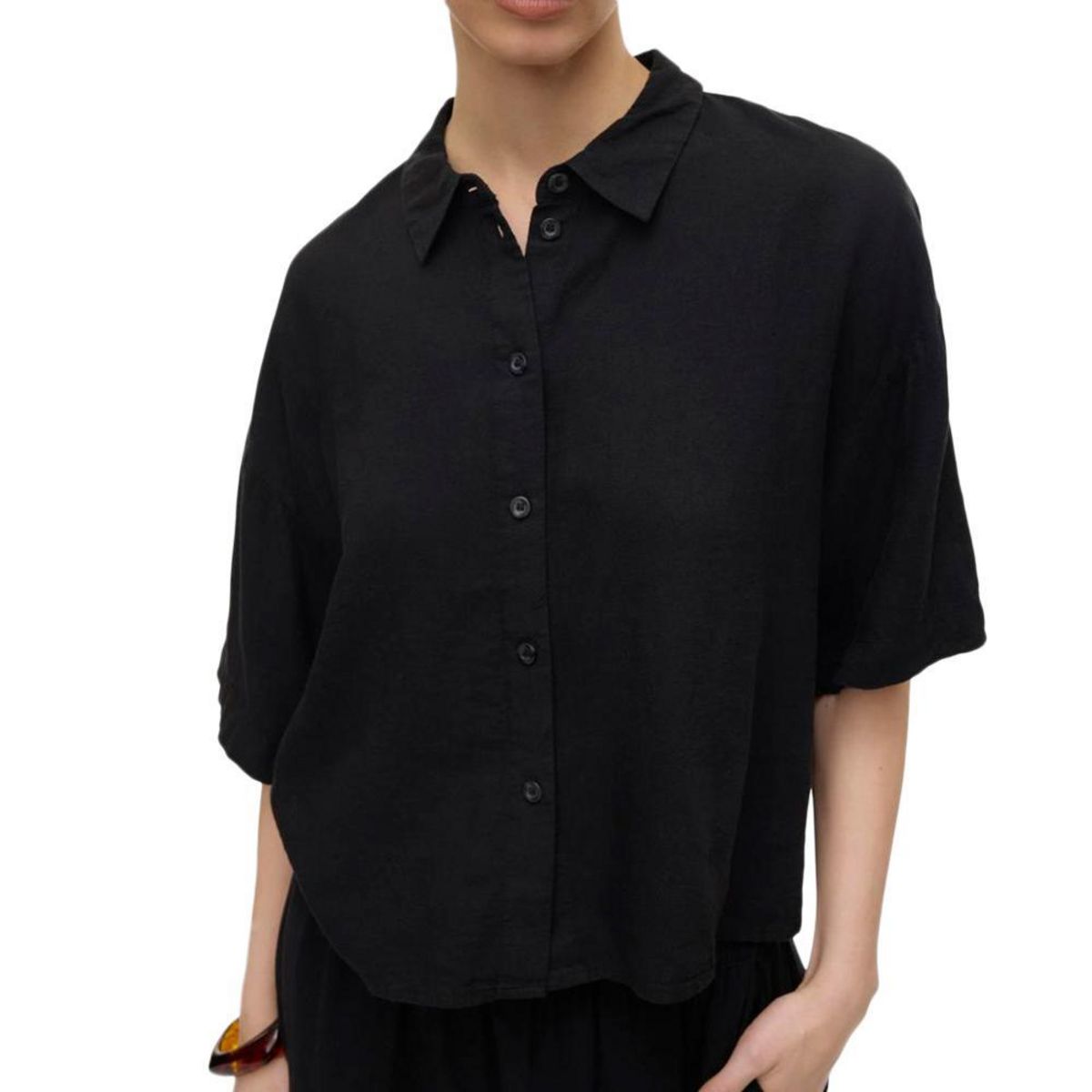 Optez pour cette chemise de la marque Vero ModaColoris : NoirCol chemiseManches longuesComposition : 55% Lin, 45% Viscose