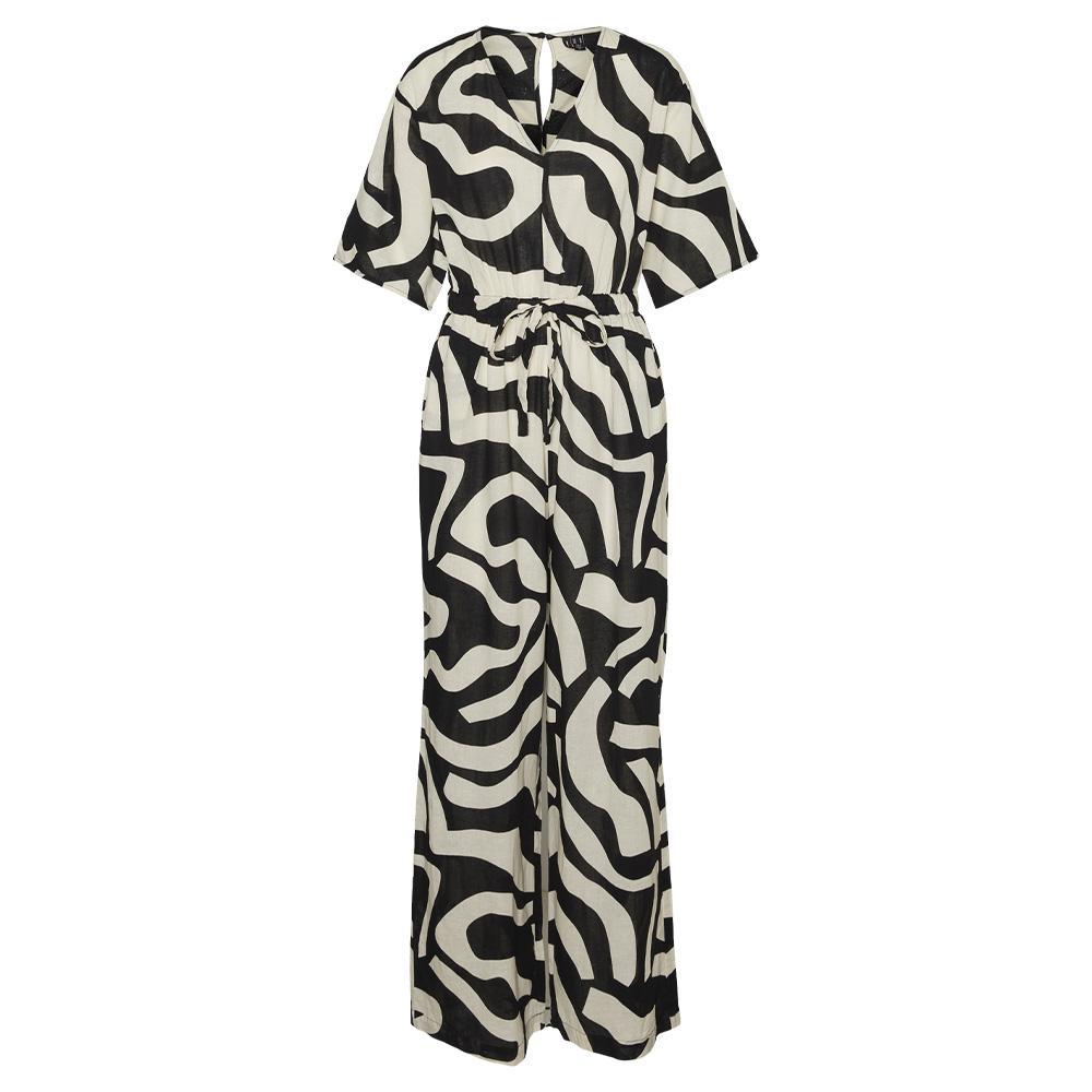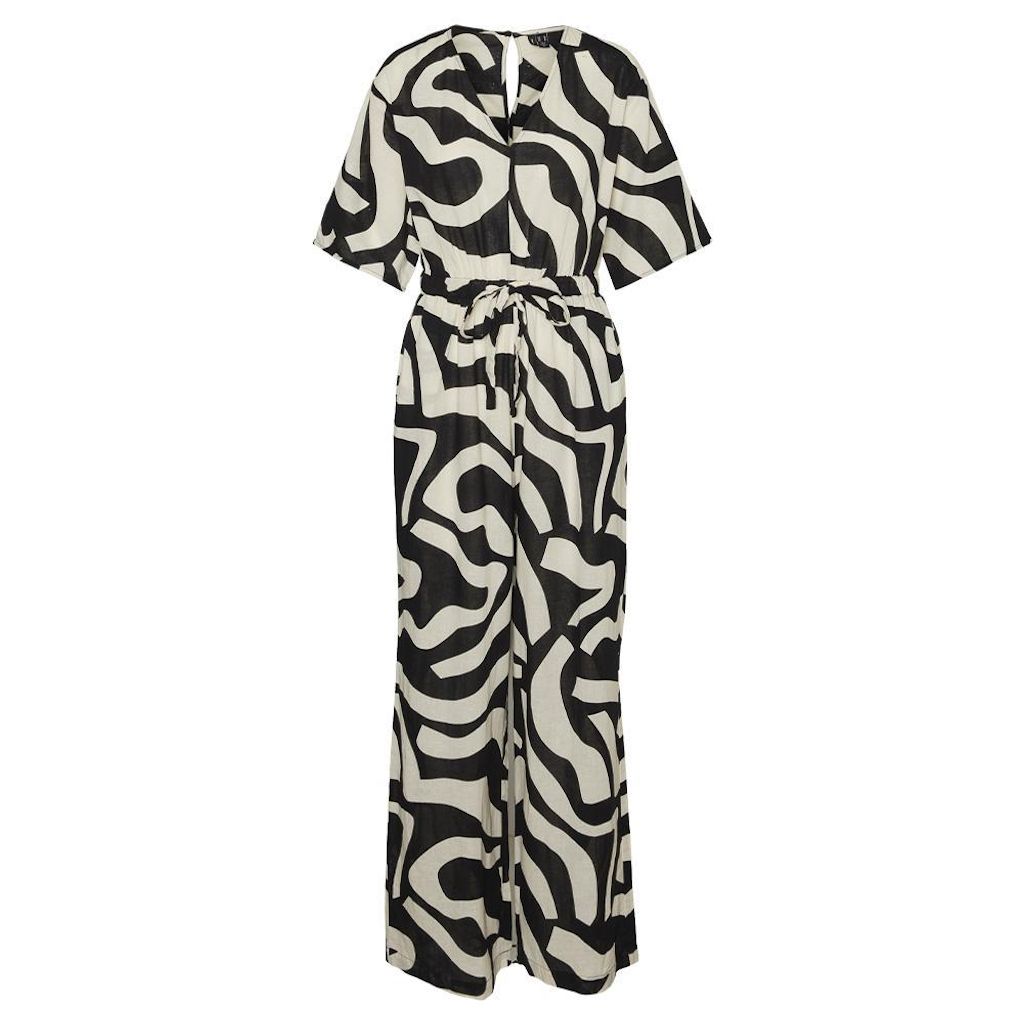 Craquez pour la Combinaison de la Vero Moda !- Coloris : Noir/Écru- Col V- Manches courtes- Ceinture à la taille- Tissu imprimé- Composition : 80% coton, 20% Lin