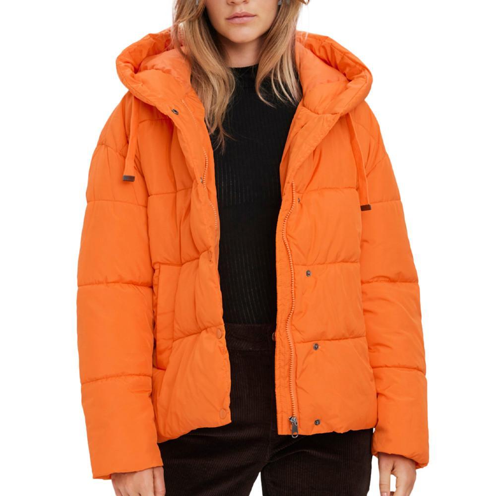 Doudoune femme de la marque Vero Moda pour un hiver au chaud ! Manches longues Capuche intégrée Fermeture à zip et à pression Col montant 2 poches Coloris : orange Composition : 100% polyester