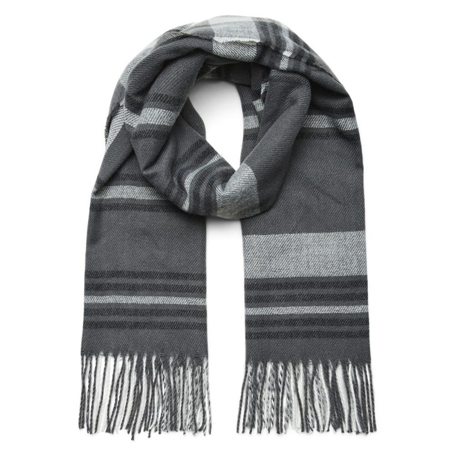 Optez pour cette écharpe Vero ModaColoris : Gris/NoirAvec frangesTissu douxComposition : 100% Polyester