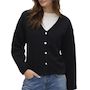 Gilet femme Vero moda !- Manches longues- Col V- Fermeture à boutons- Coloris : Noir- Tissu en relief- Composition : 82% polyester , 15% viscose , 3% élasthanne