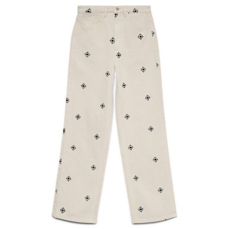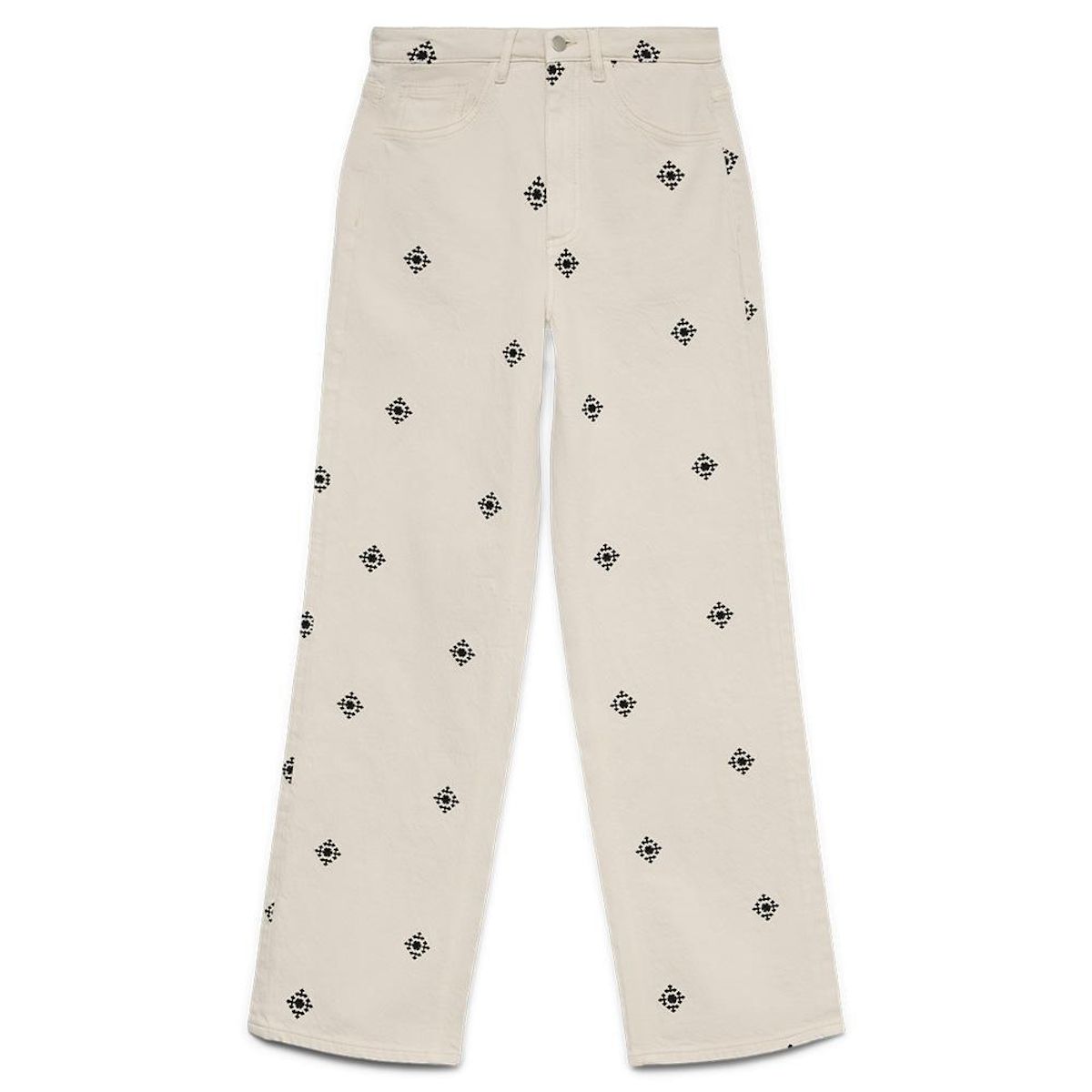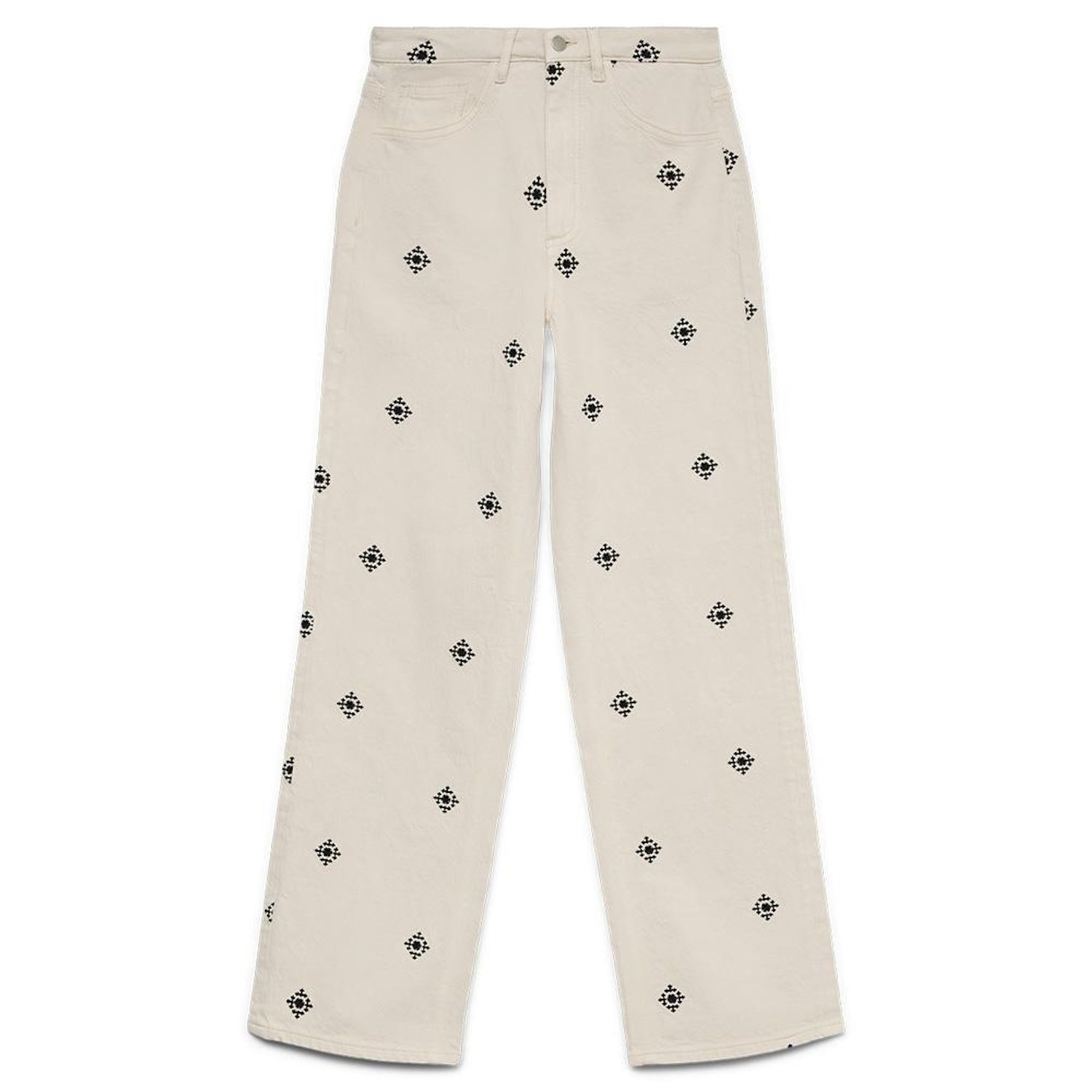Craquez pour le jean femme Vero Moda !Coloris : BeigeImprimé brodé Taille haute5 pochesComposition : 69% coton , 20% coton recyclé , 1% élasthanne