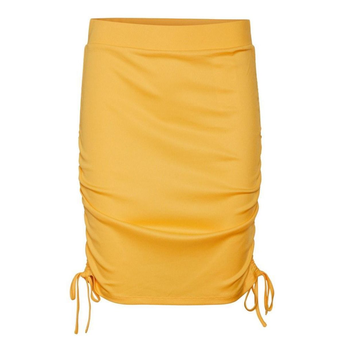Découvrez la jupe femme de la marque VERO MODA ! Coloris : jaune Coupe moulante Taille haute Détails froncés avec cordons noués sur les côtés Bande élastique à la taille Tissu doux et extensible Composition : 93% polyester recyclé, 7% élasthanne