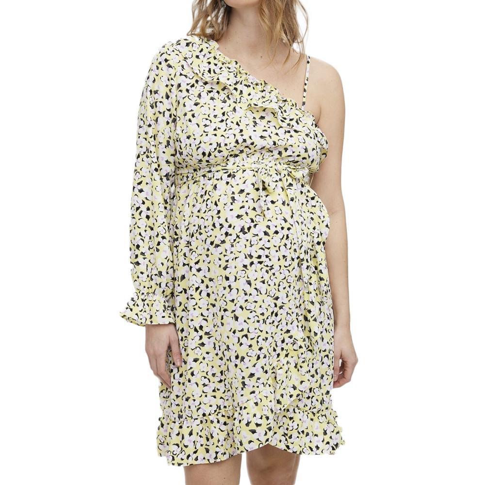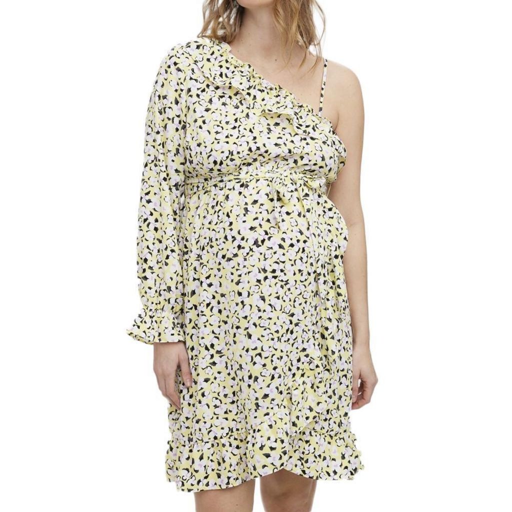 Optez pour cette robe de la marque VERO MODA MATERNITYColoris : jaune, noir, violetTissus imprimésManches longuesBretelles d'un côtéLongueur genouxComposition : 100% polyester