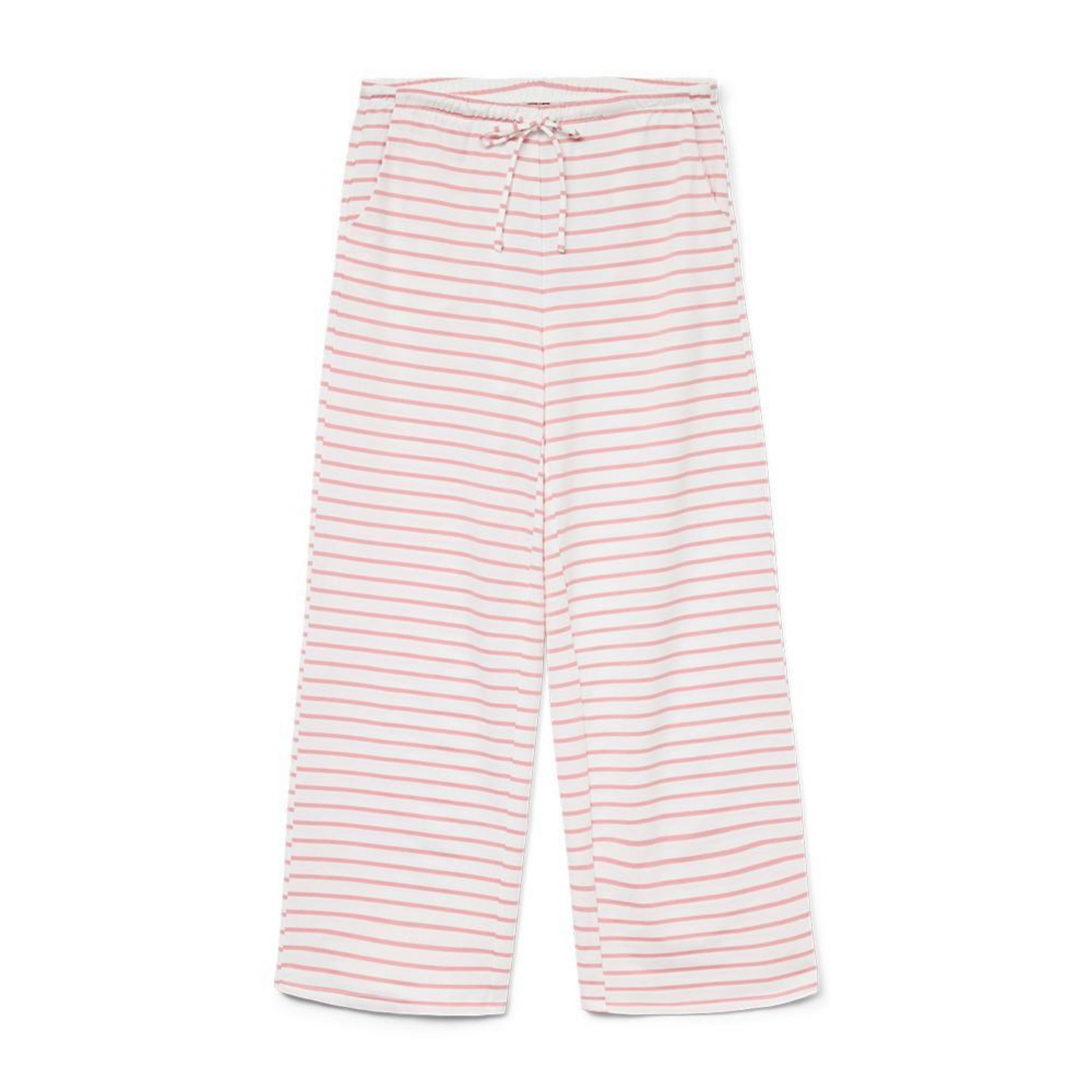 Pantalon femme de la marque Vero Moda !Taille élastique avec cordonColoris : Blanc/RosesRayures2 pochesComposition :95% polyester , 5% élasthanne