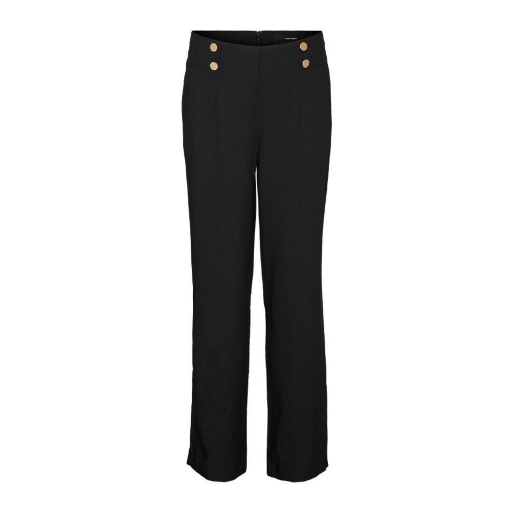 Optez pour ce pantalon Vero ModaColoris : NoirComposition: 63% polyester, 32% viscose, 5% élasthanneBraguette à fermeture éclairPoches latérales