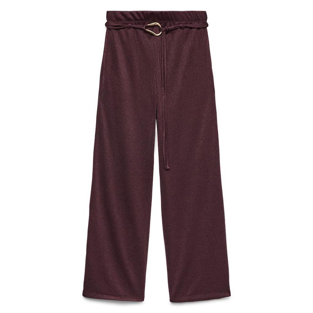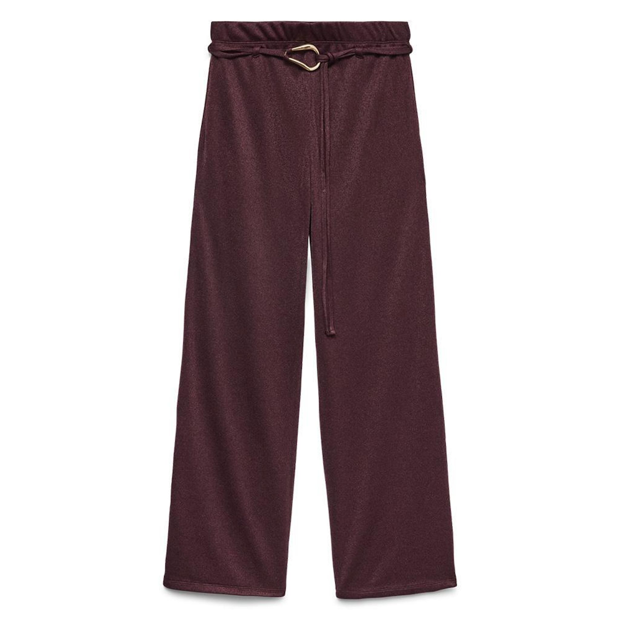 Optez pour ce pantalon fluide Vero Moda à prix bas ! Coloris : PruneTaille hauteComposition : 100 % polyester recycléCeinture fine à boucle métallique