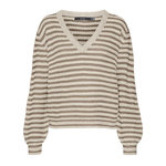 Optez pour ce pull Vero ModaColoris : Beige/ÉcruCol V Manches longuesComposition : 65 % polyester, 35 % acrylique