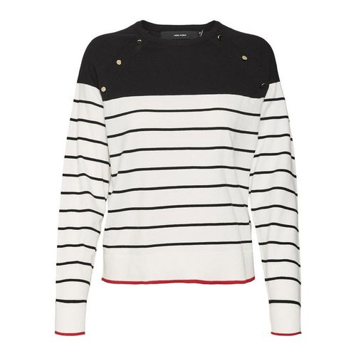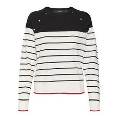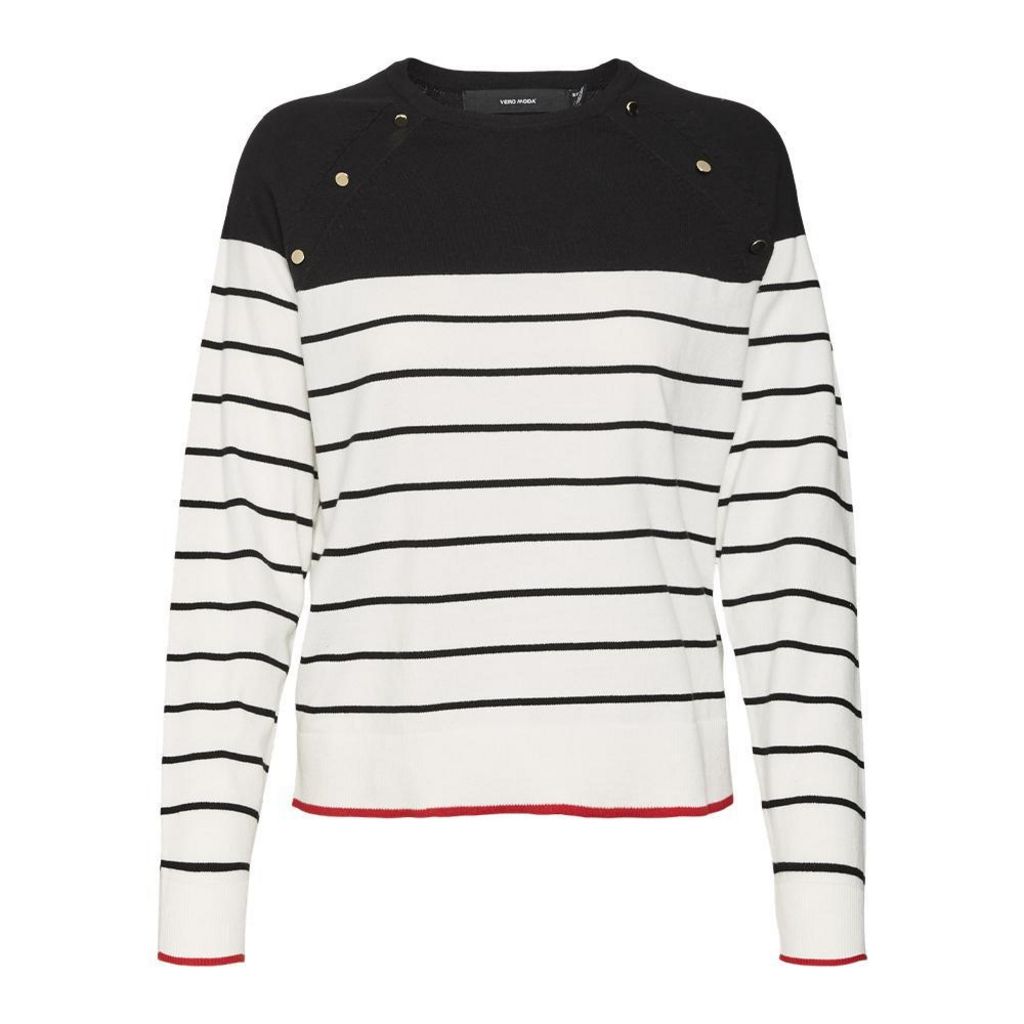 Pull femme de la marque Vero Moda !Manches longuesCol rondColoris : Noir/BlancRayuresDétail boutonsComposition : 80% coton , 20% nylon