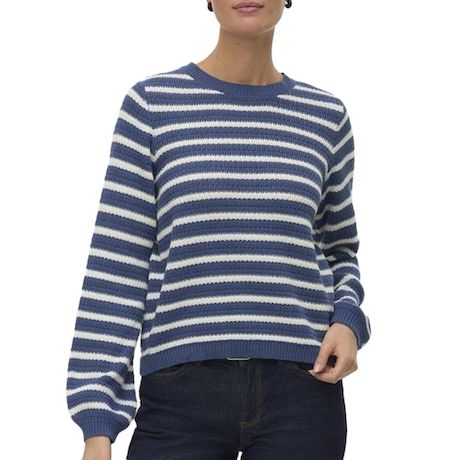 Optez pour ce pull Vero Moda à prix bas !Coloris : Bleu/BlancCol rondManches longuesComposition : 100% coton