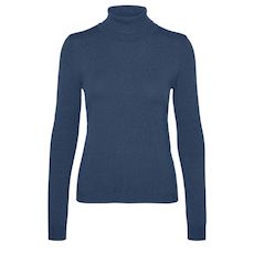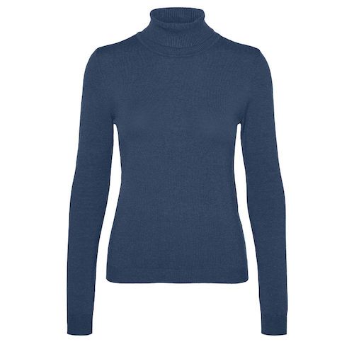 Optez pour ce pull Vero ModaColoris : Bleu Col rouléManches longuesComposition:50% viscose, 27% nylon, 23% polyester