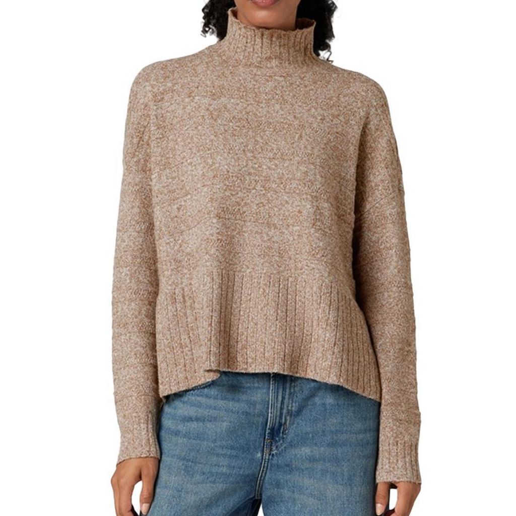 Pull femme de la marque Vero ModaManches longuesCol montantColoris : MarronMaille texturée Composition : 52% polyester recyclé , 42% polyester , 3% élasthanne , 3% nylon
