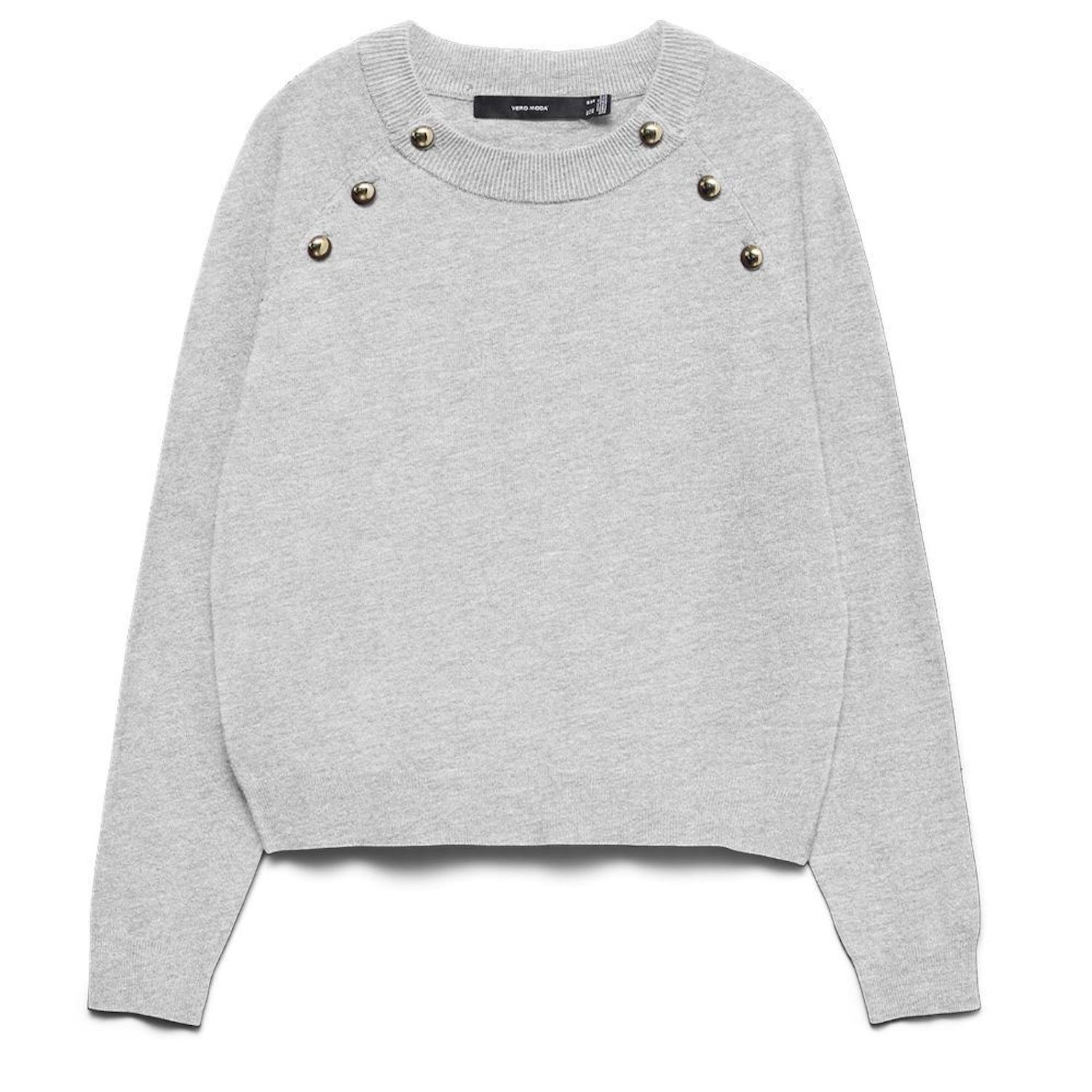 Optez pour ce pull Vero Moda à prix bas !Coloris : GrisManches longuesCol rondMaille fineBoutons sur les épaulesComposition : 50% viscose , 28% polyester , 22% nylon