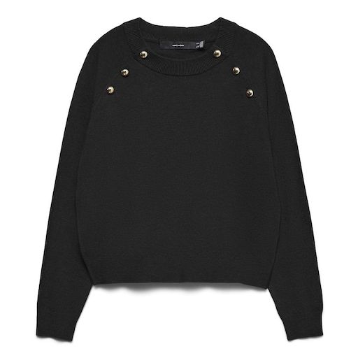 Optez pour le pull femme Vero Moda !Manches longuesCol rondColoris : NoirBoutons sur les épaulesComposition : 50% viscose , 28% polyester , 22% nylon