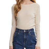 Pull femme de la marque Vero Moda Manches longues Col rond avec détails Maille fine Coloris : Beige Composition : 60% viscose , 40% coton bio