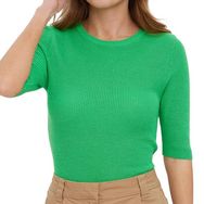 Pull femme de la marque Vero Moda Col rond Manches 3/4 Coloris : Vert Coupe courte Maille fine Composition : 50% viscose , 25% acrylique , 25% coton