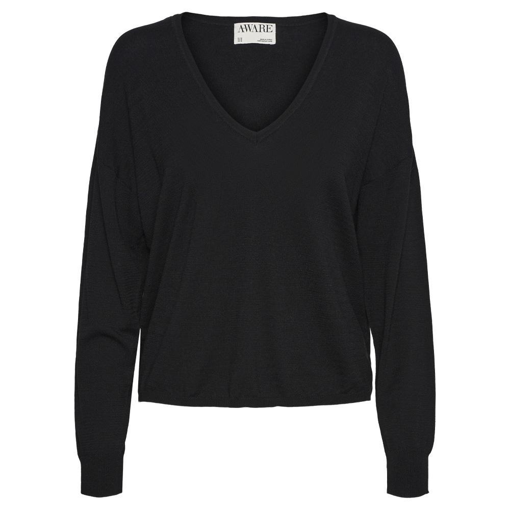 Pull femme de la marque Vero Moda !Manches longuesCol VColoris : NoirMaille fineComposition : 72% viscose , 28% polyester