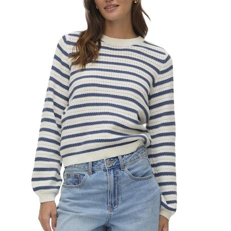 Optez pour ce pull Vero Moda à prix bas !Coloris : Marine /BlancCol rondManches longuesComposition : 100% coton