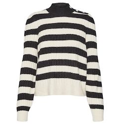 Craquez pour le pull de la marque VERO MODA !Coloris : Beige/NoirCol montantManches longuesRayuresMaille fineCoupe Droite, RegularComposition : 78% polyester, 19% acrylique, 3% élasthanne