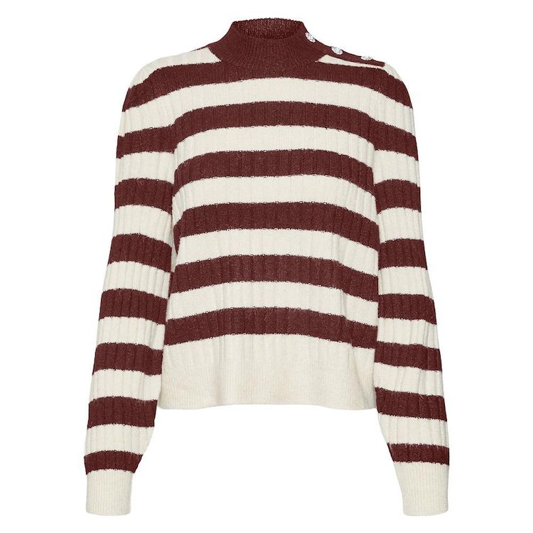 Craquez pour le pull de la marque VERO MODA !Coloris : Bordeaux/BlancCol montant Manches longues Rayures Maille fineCoupe Droite, RegularComposition : 78% polyester, 19% acrylique, 3% élasthanne