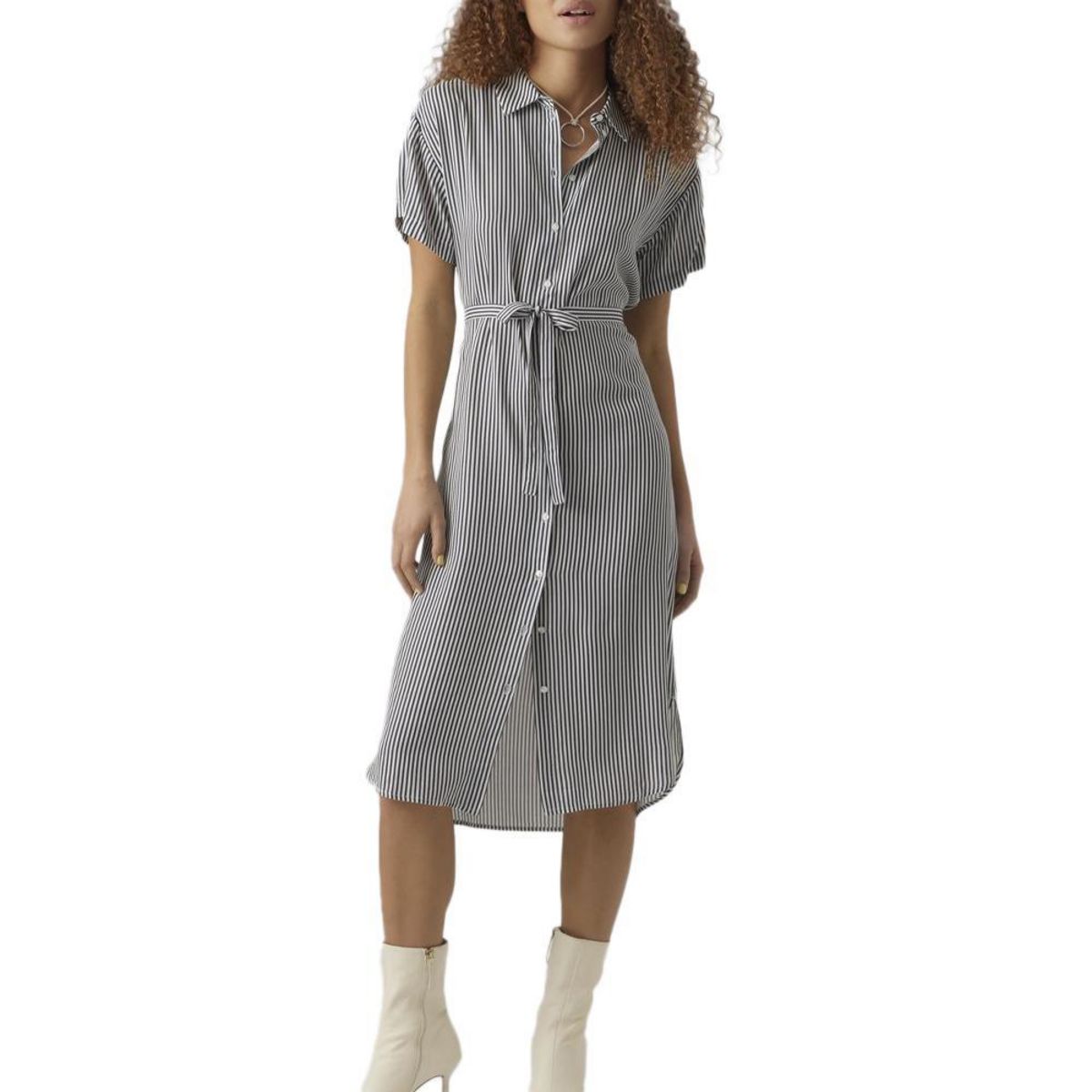 Optez pour la robe femme de la marque Vero Moda !Manches courtesCol chemiseRayuresColoris : Marine/BlancCoupe longueCeinture à la tailleComposition : 100% viscose