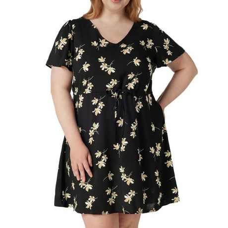 Craquez sur cette robe pour grandes tailles de la marque Vero Moda ! Coloris : Noir, vert, blanc, orange Composition : 100% Viscose Motifs fleurs Col V Manches courtes Lien de resserage