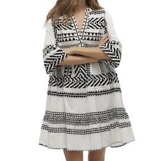 Optez pour cette robe de la marque Vero ModaColoris : Beige/NoireCol VManches 2/3Composition : 100% Coton biologiqueManches larges