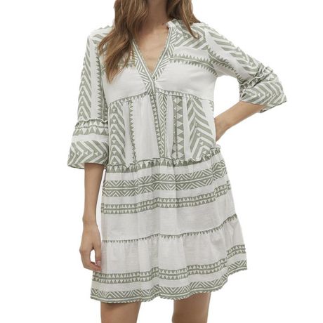 Optez pour cette robe de la marque Vero ModaColoris : Beige/Vert Col VManches 2/3Composition : 100% Coton biologiqueManches larges