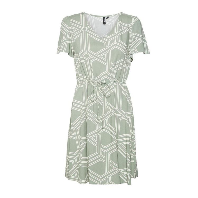 Optez pour la robe de la marque VERO MODA !Coloris : Blanc/VertCol VManches courtesMotif impriméLongueur : miniComposition : 100% viscose
