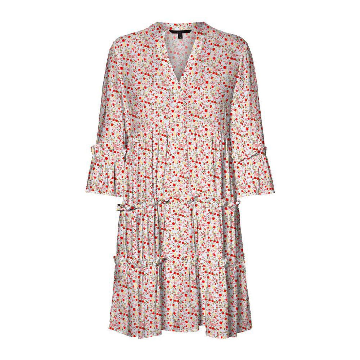 Optez vite pour la robe femme de la marque Vero ModaManches 3/4Col VDétails volantsColoris : Blanc/Rouge ImpriméComposition : 100% viscose