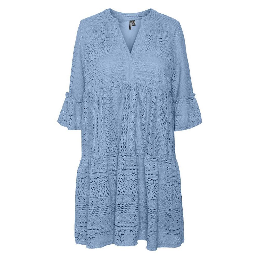 Optez pour la robe de la marque Vero Moda !Coloris : Bleu Col V Manche 3/4Broderie Coupe courte Composition : 75% Coton 25% Nylon